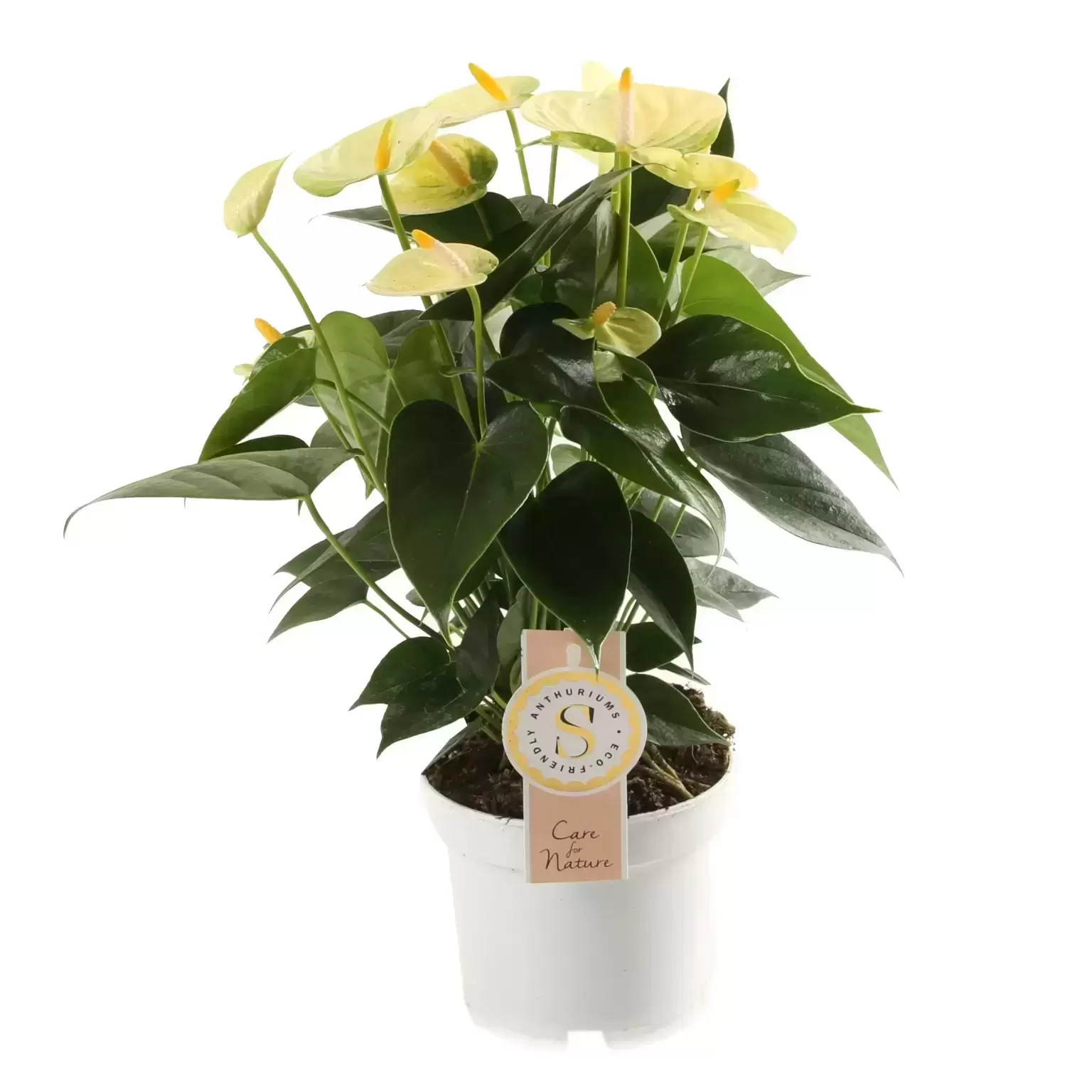 Glossy, dark green leaves with delicate lemon yellow flowers which may last up to 8 weeks.