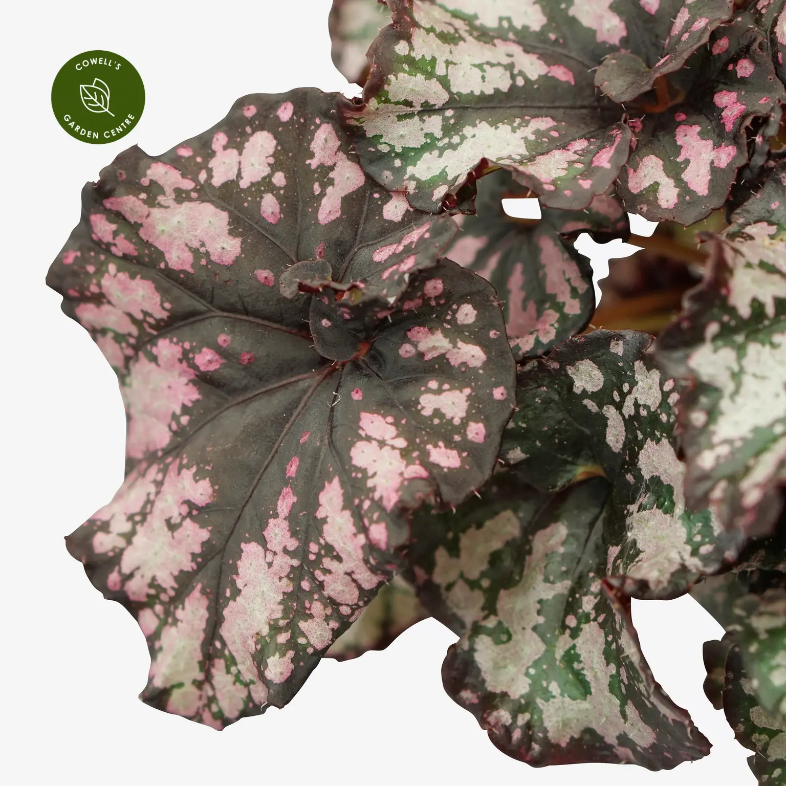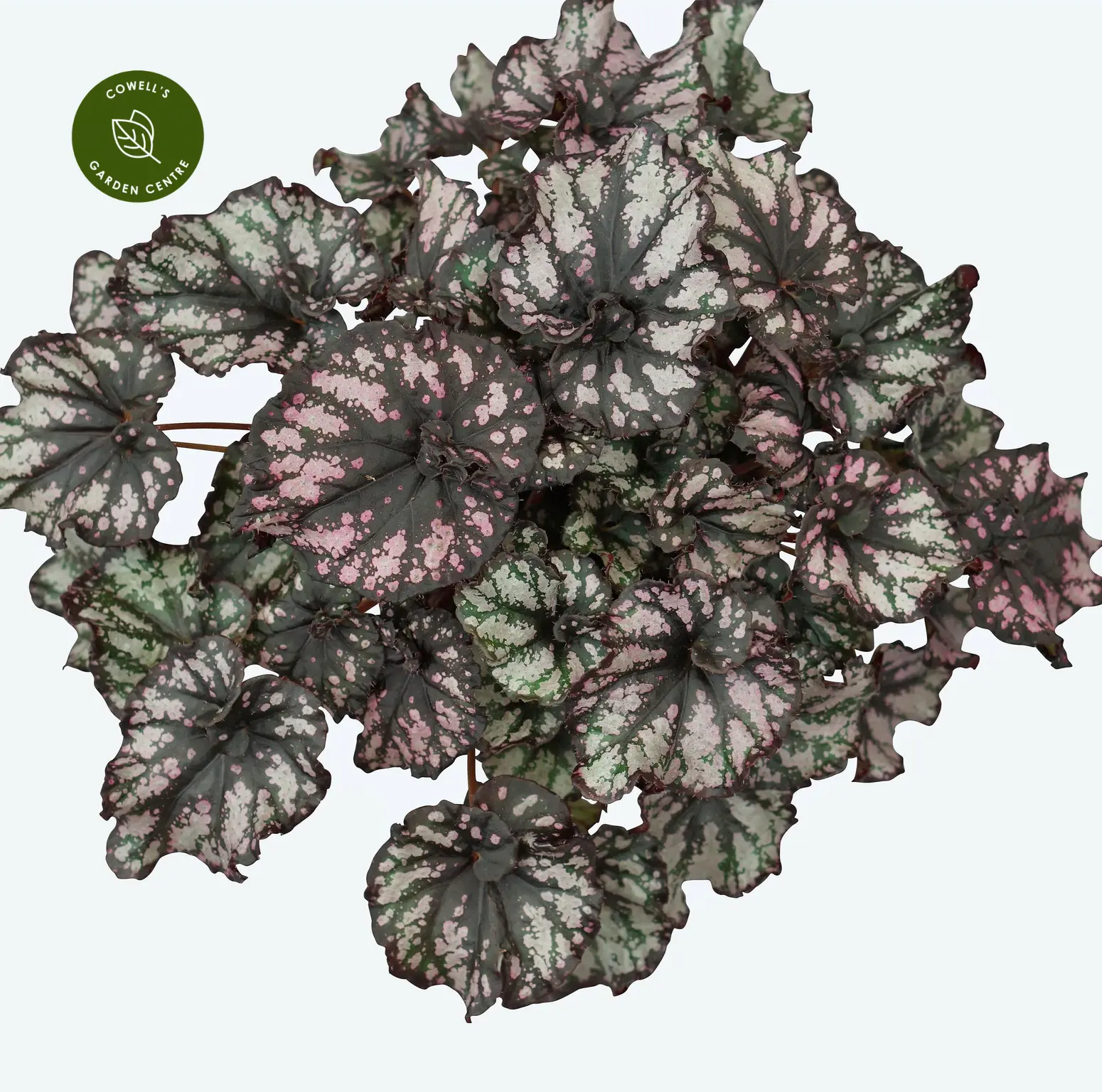 Iridescent silvery pinksleaves with silver veining, and pale pink flowers in spring. Enjoys humidity, so ideal plant for bathrooms and kitchens.
