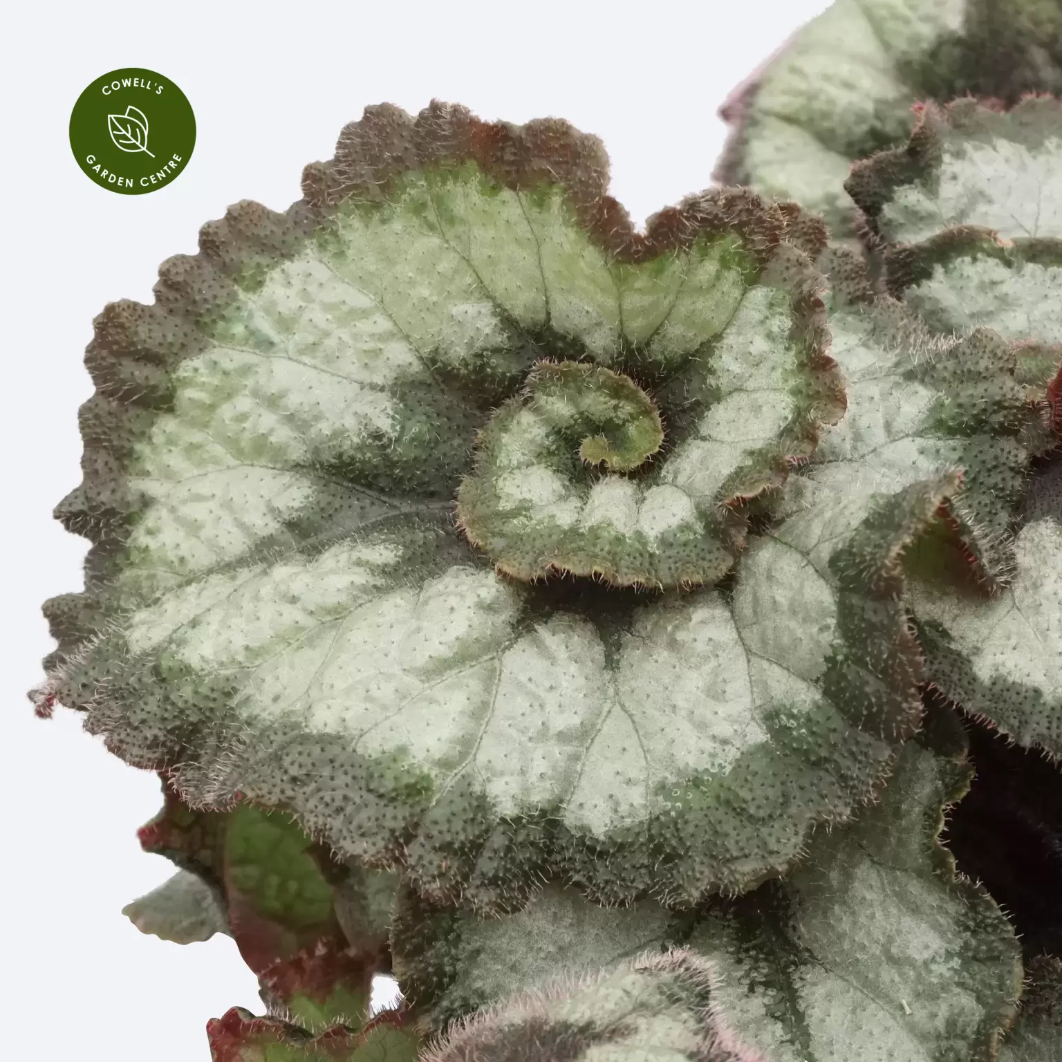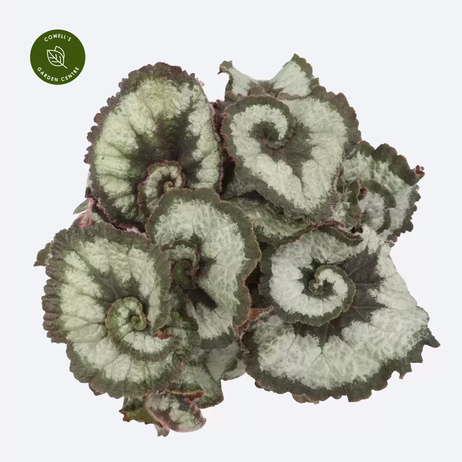 Attractive, silver and green spiralled foliage and light pink flowers in the autumn. Enjoys humidity, so ideal plant for bathrooms and kitchens.