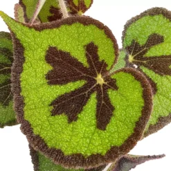 Interesting, textured foliage in green and brown, with small hairs on the leaf which give the plant a unique shine. Enjoys humidity, so ideal plant for bathrooms and kitchens.