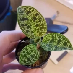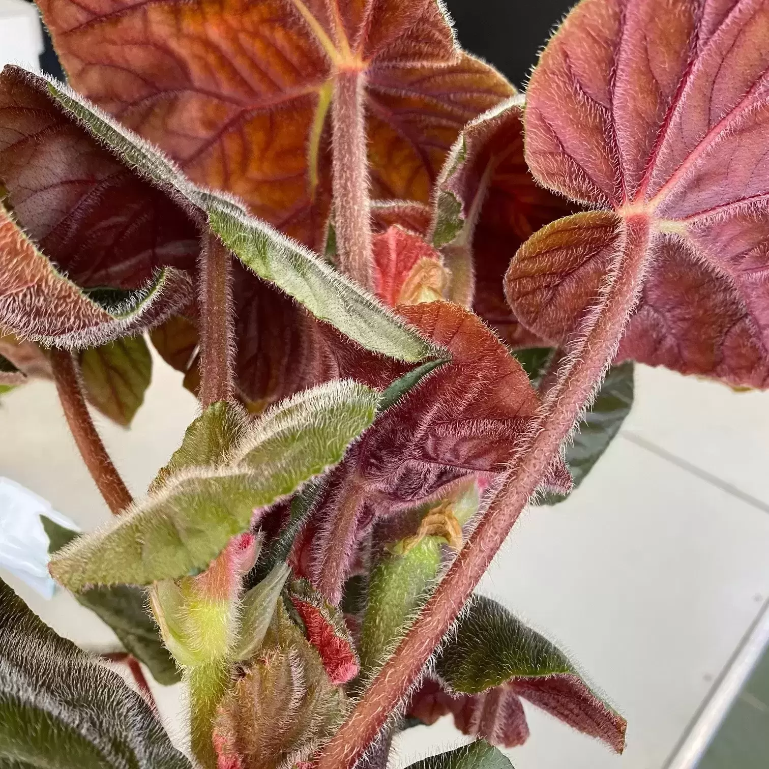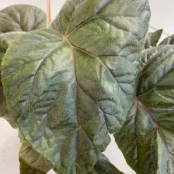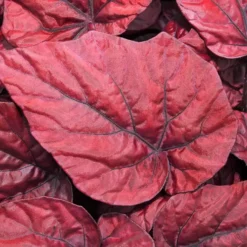 ‘Oldemor’ produces dramatic large foliage of glossy green, with contrasting red veining on the underside of the leaves. Likes humidity, but should not have the leaves directly misted.
