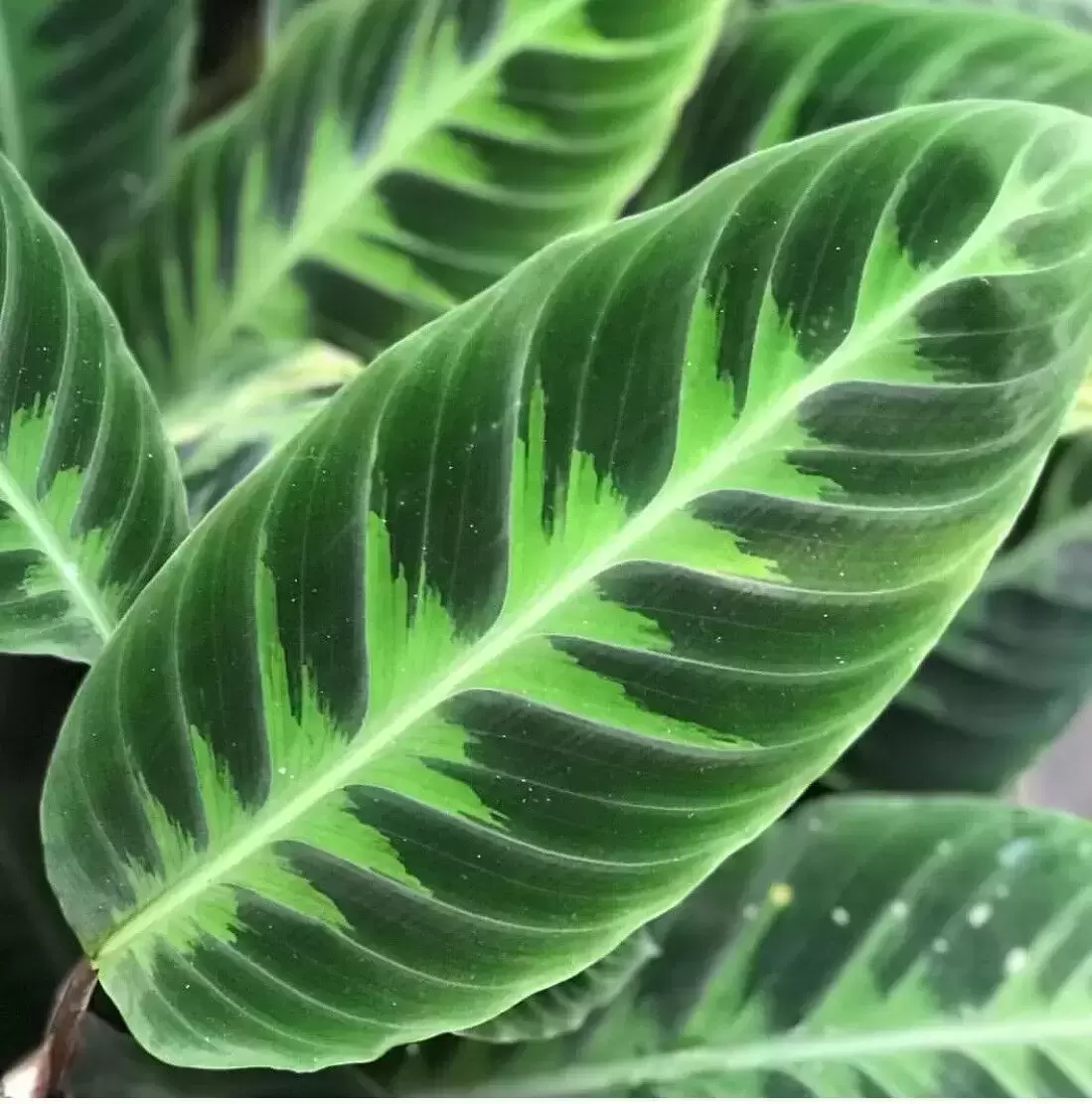 Wonderful, velvety foliage in lush green with a bright green, irregular markings from the central vein of each leaf. Large leaves mean this is an excellent air purifying plant.