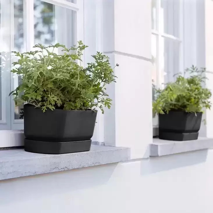 This beautiful designer pot made from recycled plastic is frostproof and therefore suitable for all seasons in the garden or on the terrace. The pot has an integrated water reservoir so your plants will always have enough water. These flower pots are made from high-quality plastic, are easy to clean, and are sturdy.