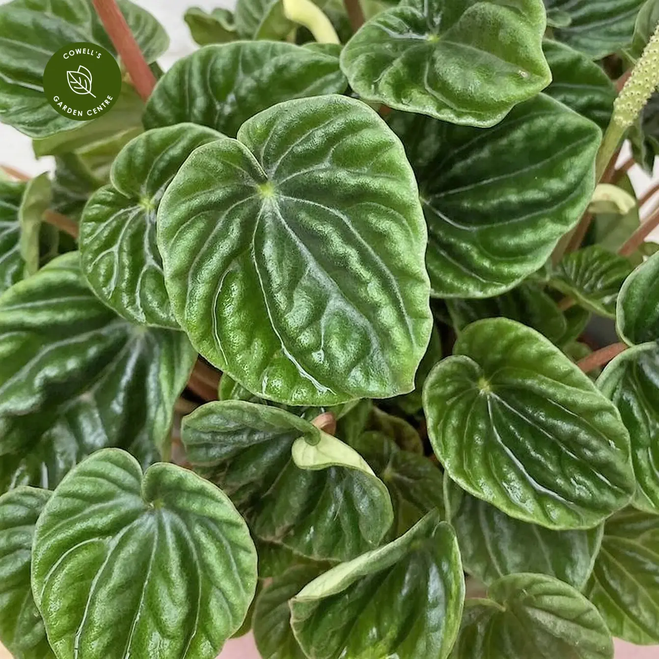 Eye-catching tropical houseplant with thick, textured, dark green leaves on slender stems.Â